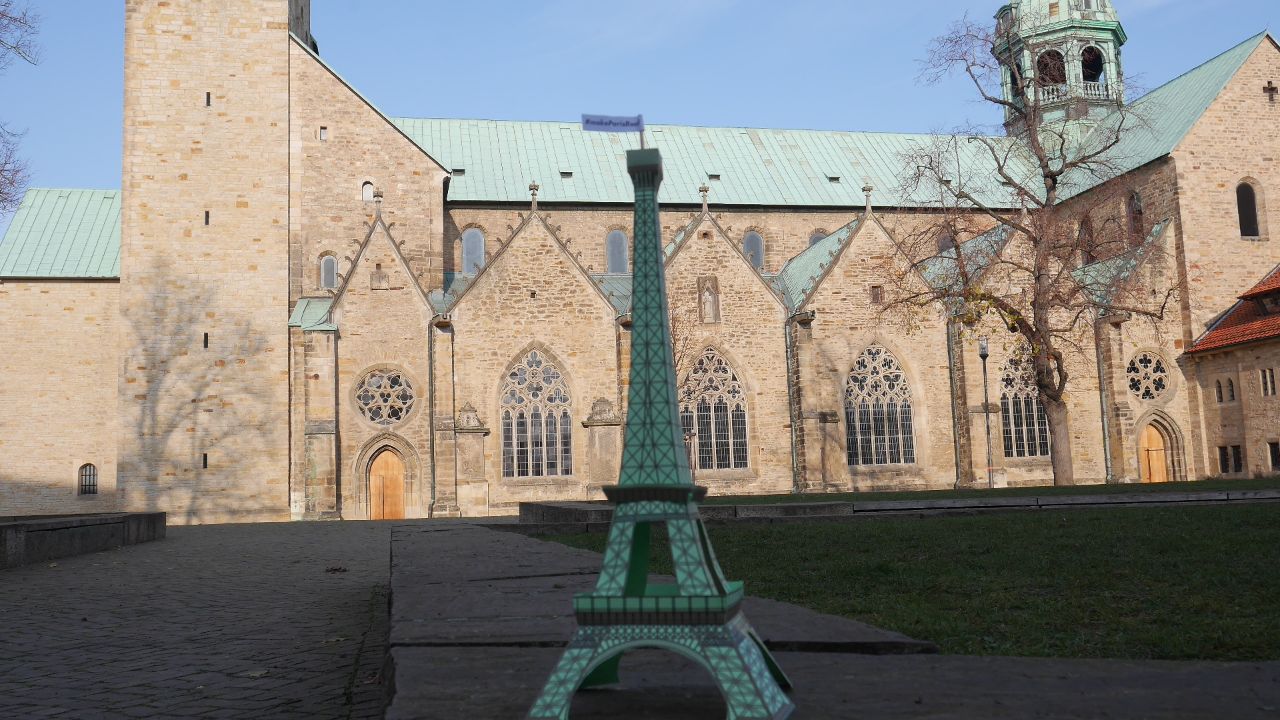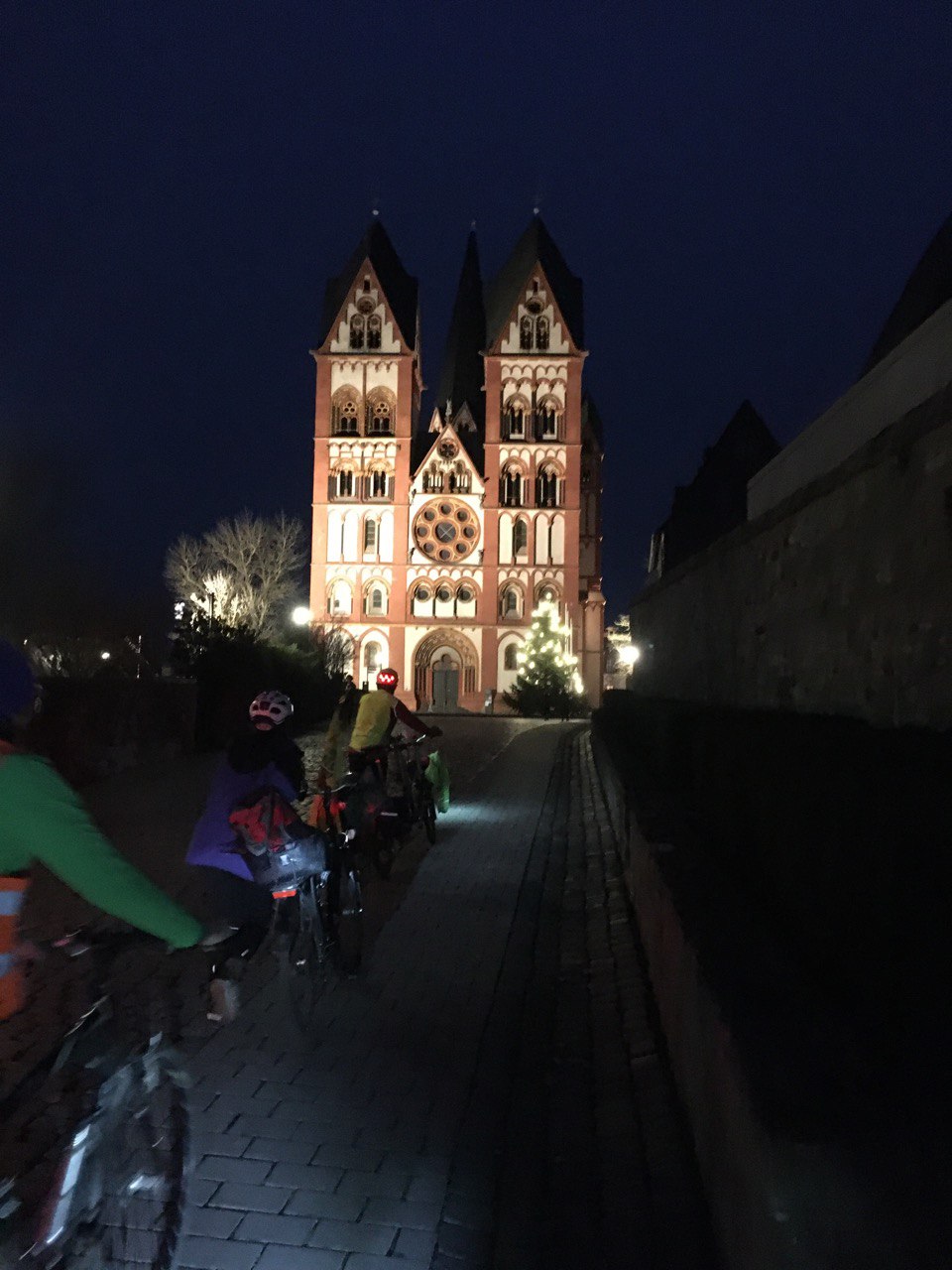 Um in der Nacht geschützt stehen zu können, bis die Fahrt weitergehen sollte, durfte der Eiffelturm bis zum Samstagmorgen im Limburger Dom untergestellt werden. Die am Abend erschöpften Radfahrerinnen und Radfahrer nahmen das als ein gutes Zeichen und Bestätigung für die Zielsetzung ihrer Aktion. Domkapitular Dr. Christof May, der sich für die Nachhaltigkeit einsetzt und selbst gerne das Fahrrad benutzt, sagt dazu: Ich finde es toll, dass in dieser Nacht unser schöner Limburger Dom Asyl gewährt hat – und zwar für einen ganz besonderen Gast: das Modell des Eiffelturms von Paris. Das Modell steht für das Klimaschutzabkommen, das vor fünf Jahren dort vereinbart wurde. Begleitet von einer etwas anderen Pilgergruppe von Radfahrer*innen wird es zu den am 10. / 11. Dezember anstehenden Klimagesprächen der Europäischen Union nach Brüssel gebracht. Das Bild passt: In den Wintermonaten öffnen einige Kirchen ihre Türen, damit Menschen in Not, Obdachlose, Gestrandete dort Obdach in der dunklen und kalten Jahreszeit finden. Gewiss ist der Eiffelturm nicht gestrandet, er ist kein Clochard, aber es scheint, dass der Klimaschutz nach und nach ins Klimaschützer sind keine Bettler, denen man en passant die „Münze für das gute Gewissen" in den Hut wirft. Doch genauso werden sie oftmals kritisch beäugt. Mit der Enzyklika „Laudato sii" erinnert uns Papst Franziskus daran, dass uns Christinnen und Christen die Bewahrung der Schöpfung ins Stammbuch geschrieben ist – es ist eben keine Randerscheinung! Und somit ist der Besuch des französischen Monuments nicht das Obdach für einen Gestrandeten. Im Gegenteil – vielleicht wird man in ein paar Jahren eine Messingplatte anbringen: „Hier übernachtete der Eiffelturm auf seinem hoffnungsvollen Weg nach Brüssel!" Möge der Segen, der seit vielen Jahrhunderten in diesem Dom gespendet wird, die Radler*innen begleiten, damit auch die nach uns kommenden Generationen in einer von Gott gesegneten und von den Menschen bewahrten Schöpfung aufwachsen können.